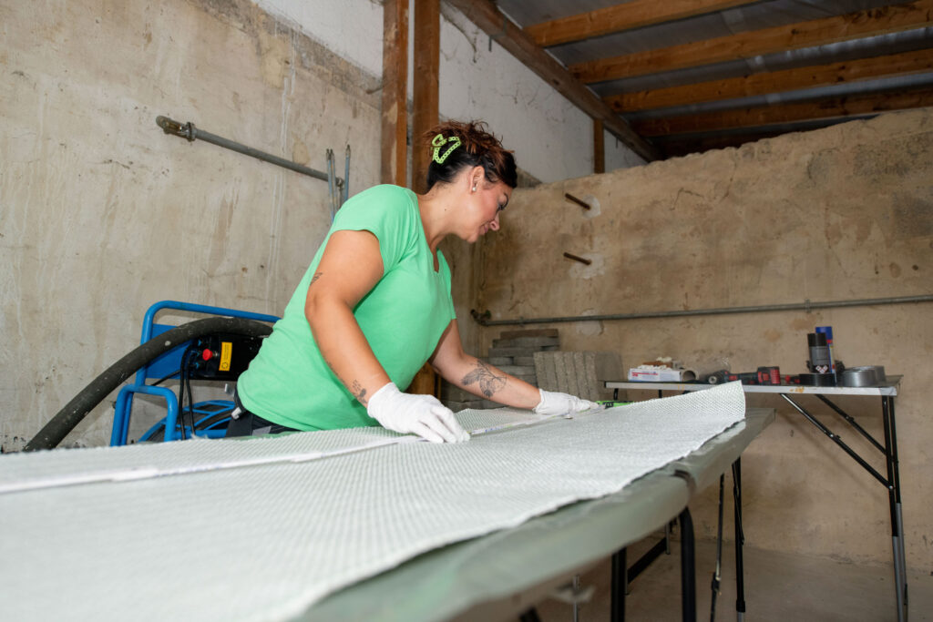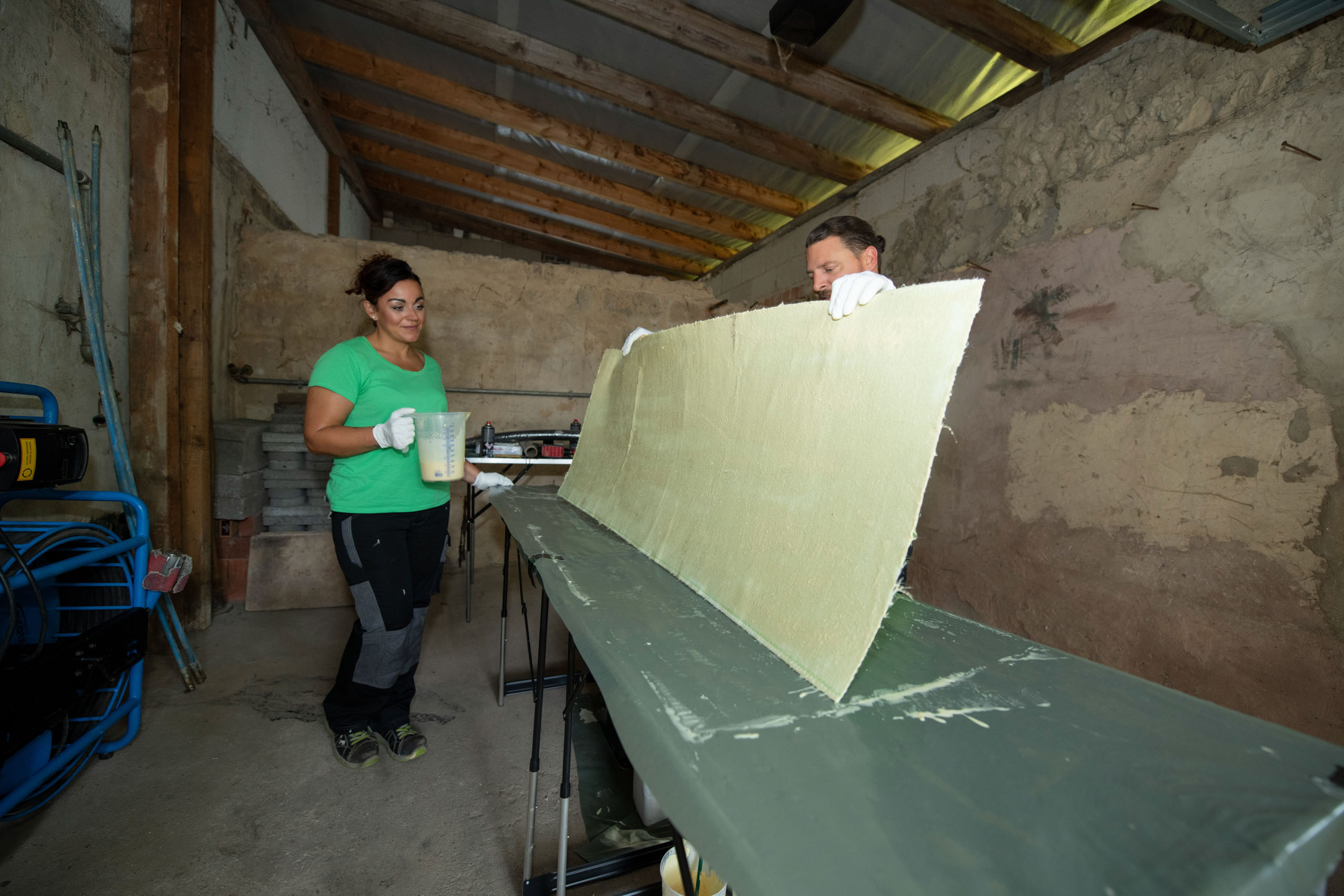Ein Kurzliner besteht aus einer harzgetränkten Glasfasermatte, die
