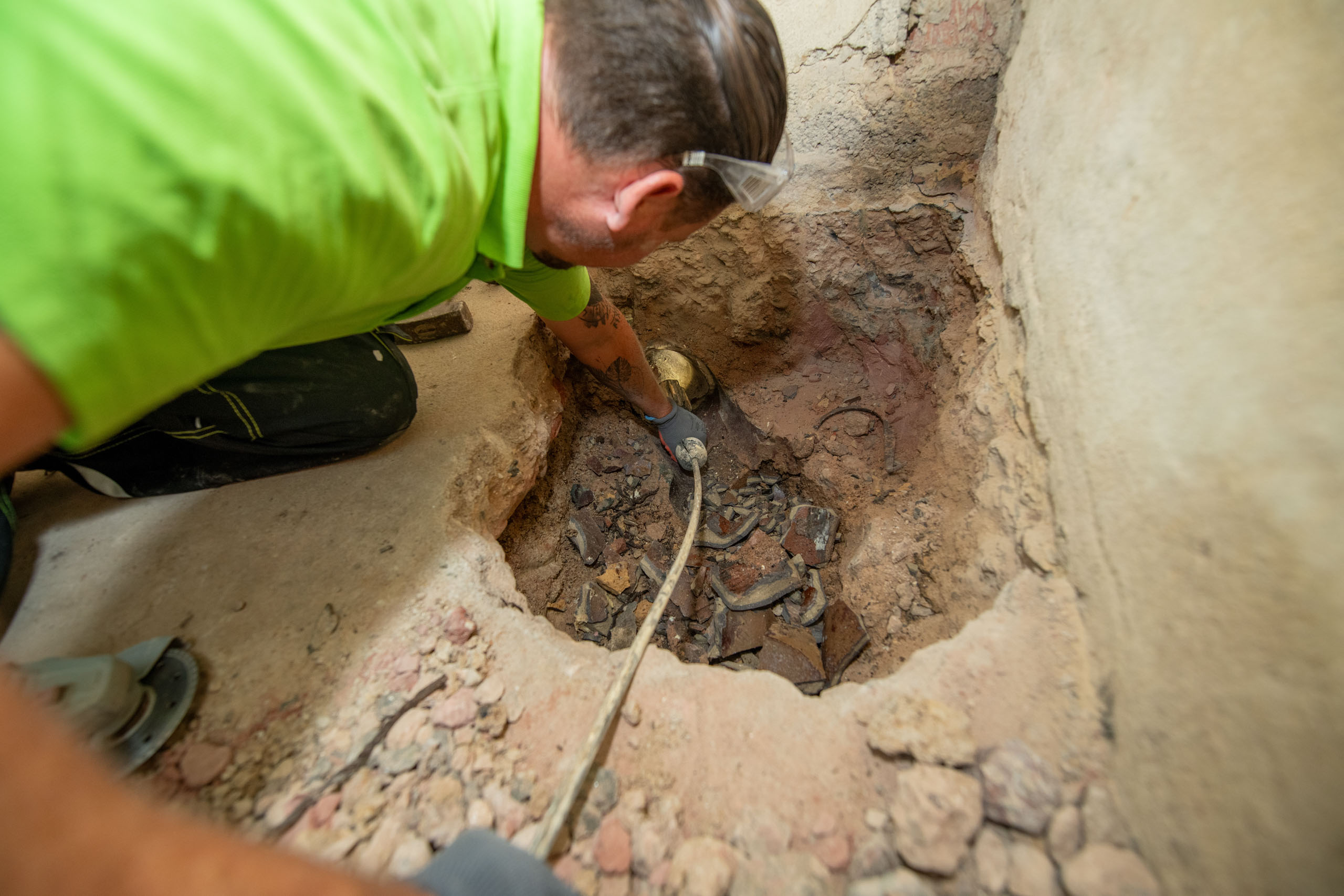 - einem Harz, der aushärtet und eine starke, wasserdichte Schicht bildet, die das Rohr wieder funktionsfähig macht.